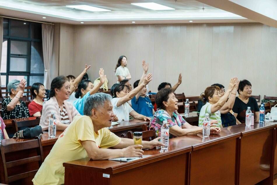 實踐團講師李世博為居民科普養心知識(付欣然 攝)