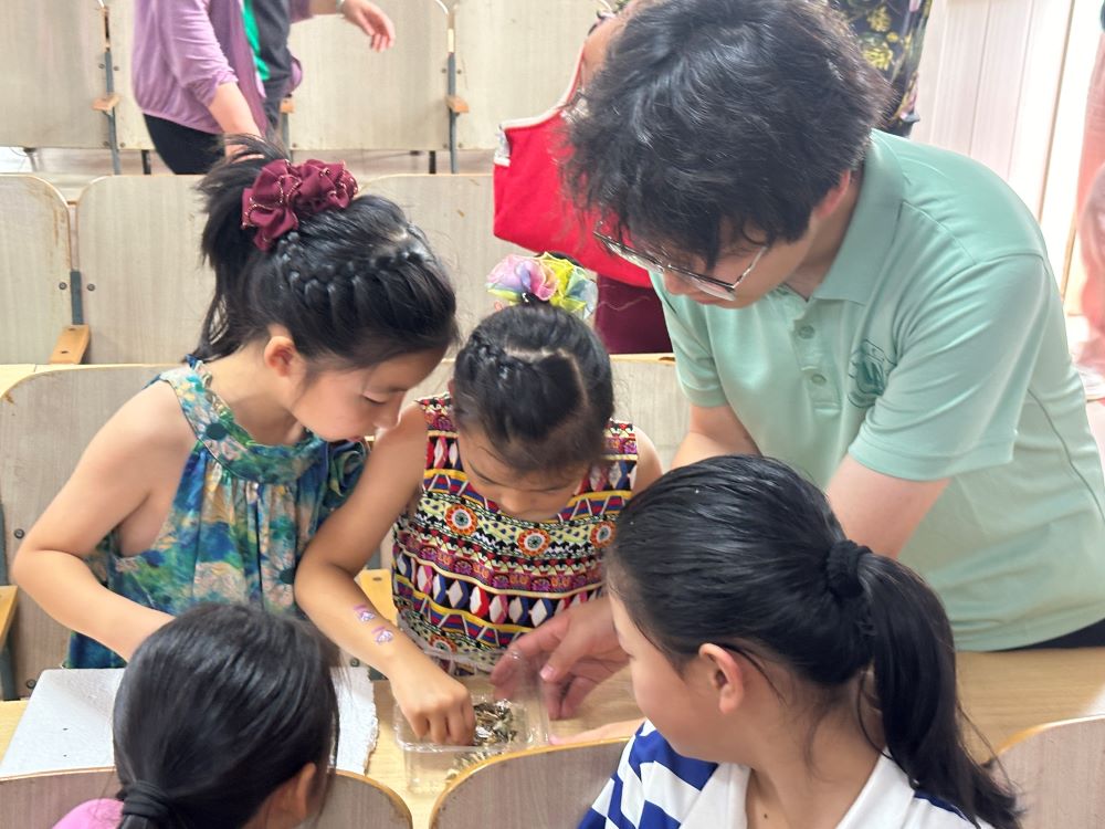 為了讓孩子們更直觀地了解昆蟲,實踐團還進行了昆蟲標本制作的科普。他們介紹了昆蟲標本的意義,展示了昆蟲針、展翅板等工具和材料,并詳細講解了針插法和展翅法的操作方法。孩子們聽得津津有味,對即將開始的標本制作充滿期待。在實踐團成員的耐心指導下,孩子們親手制作了屬于自己的昆蟲標本,體驗了從觀察到制作的全過程。