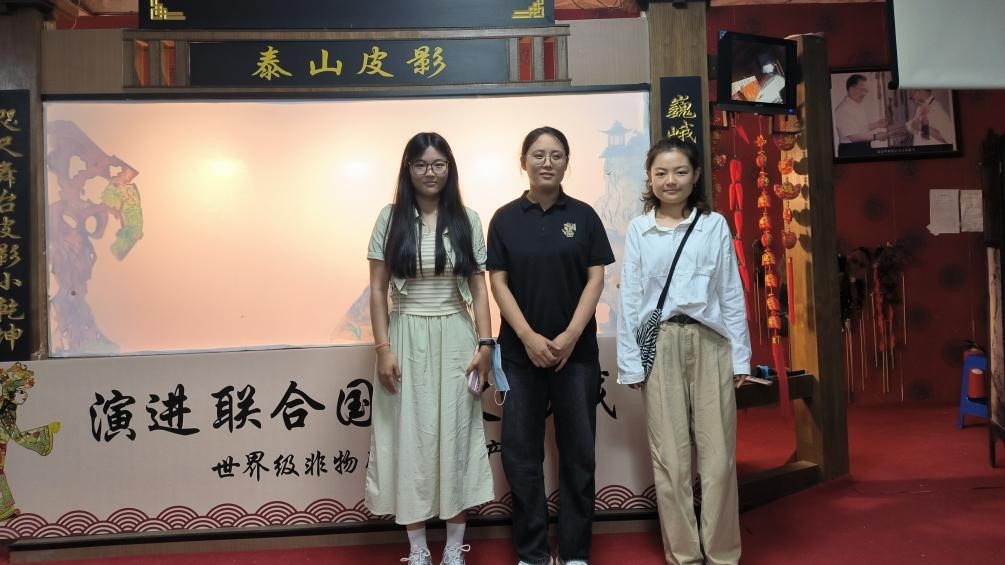 圖為實踐隊員與泰山皮影表演者合影 中國青年通訊員 張明迪 供圖