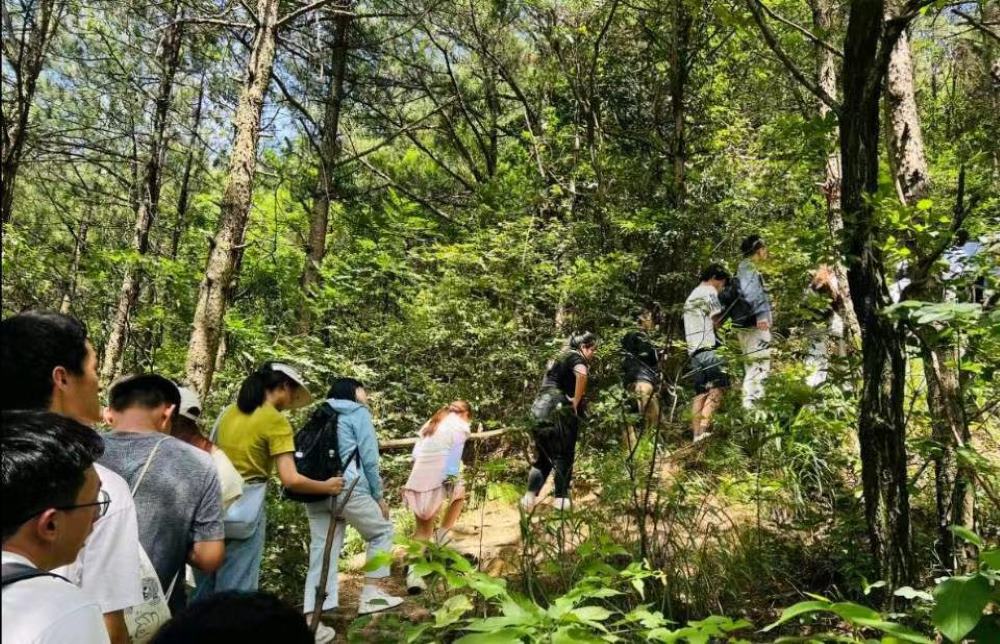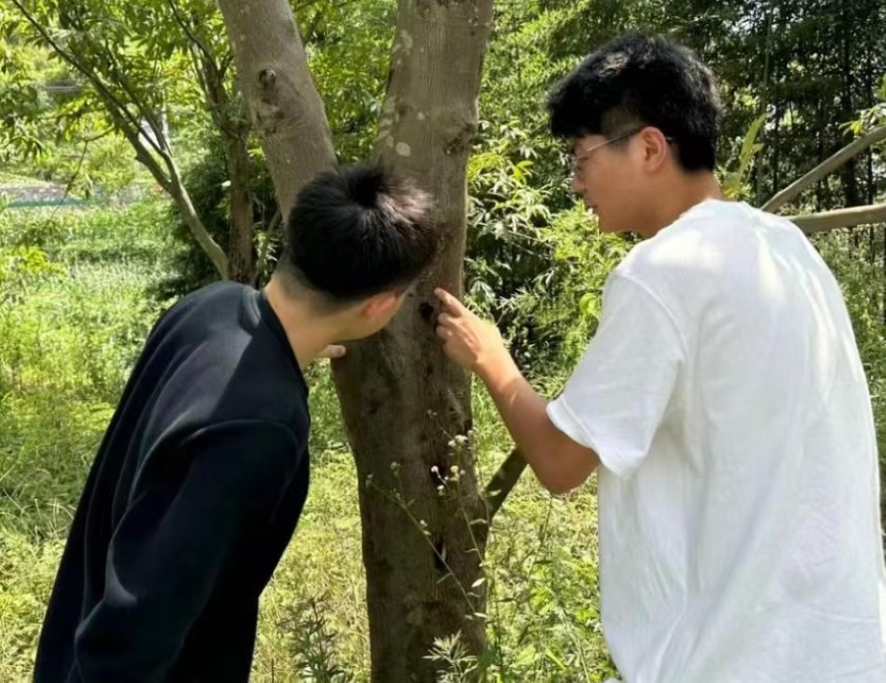 圖為山核桃小分隊成員深入觀察山核桃樹生長狀況時的場景。