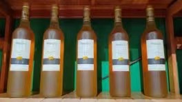 圖為衍生產(chǎn)品臍橙酒。通訊員 鄭曉玲 攝 實踐隊員徐梓欣感嘆道;“我真的不敢想象,一顆小小的臍橙,竟然一身都是寶,創(chuàng)造出了這座江畔小城大大的奇跡!”