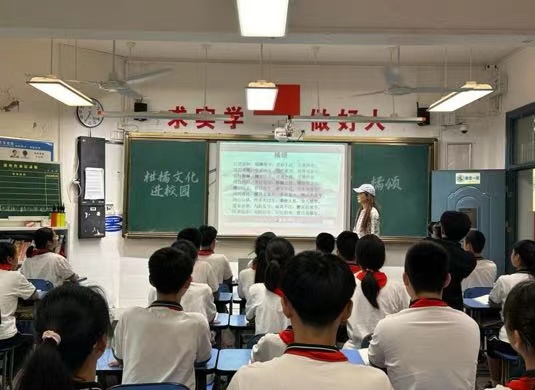 圖為志愿者為同學(xué)們講述柑橘文化。通訊員 邵文妹 攝