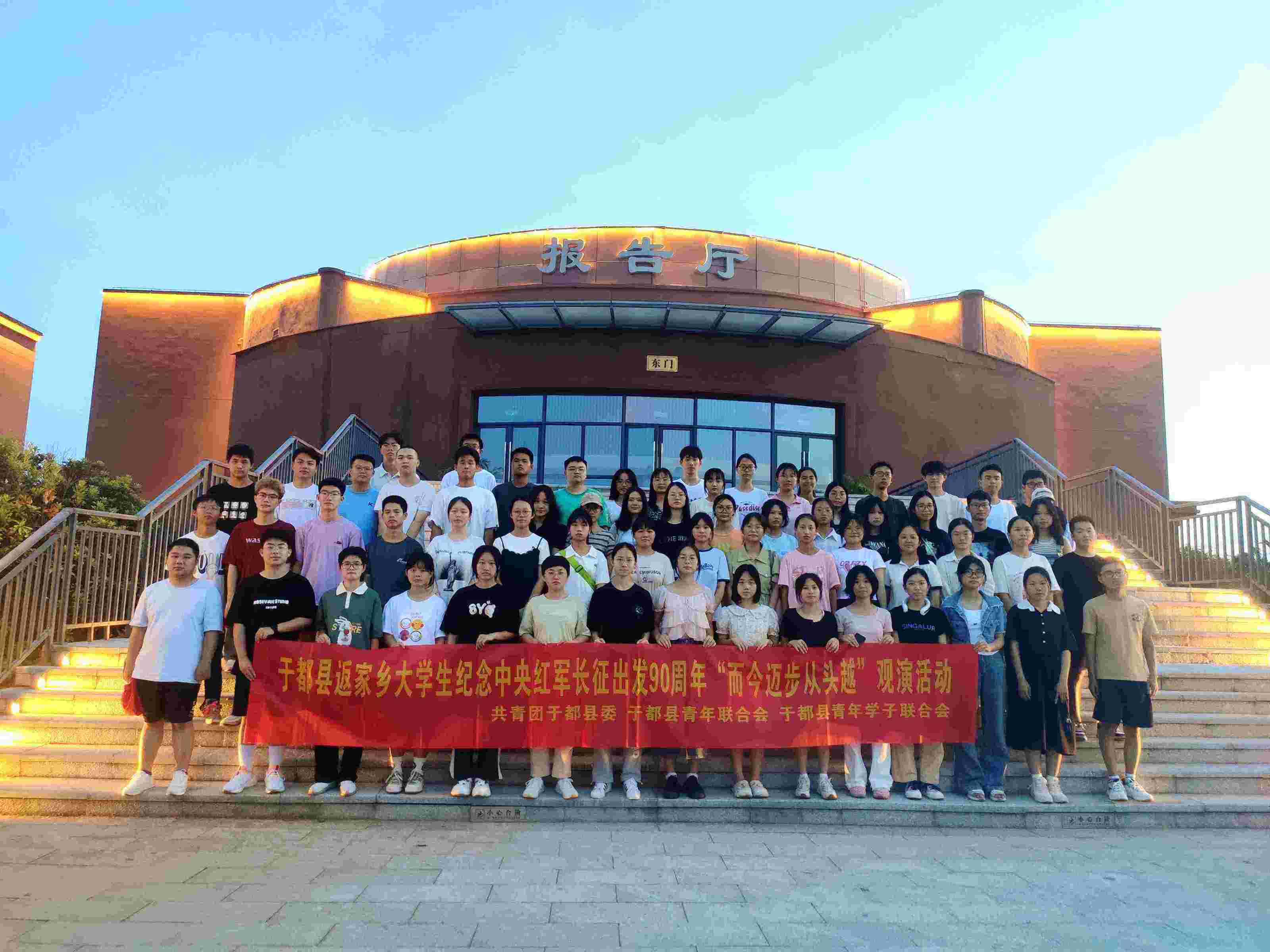 為紀念中央紅軍長征出發90周年,緬懷先烈,牢記歷史,厚植廣大青少年的愛國主義情懷,積極把愛國主義教育、紅色歷史教育融入實踐活動中,7月14日,共青團于都縣委組織返家鄉大學生觀看江西于都“長征源”合唱團《長征組歌》表演,在場人員無一不為先輩無私奉獻,浴血奮戰的偉大革命精神動容,偉大的長征精神也在一場場淋漓盡致的表演中得到詮釋。