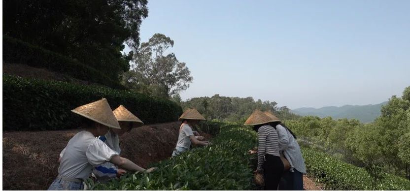 從田地離開后,志愿者又隨村支書來到新楊村另外一個主要收入來源地——茶園。在這里,志愿者見識到了層層茶山,村支書在旁邊介紹說,當地茶產業從新中國成立前期便已經出現,到今天為止,已經形成了一套完整的采茶,烹茶,喝茶流程。在國家和政府的大力支持下,新楊村有關茶葉的技術也在不斷突破。望著一層層茶山,志愿者建議新楊村或許可以考慮發展茶文化旅游業,茶園周圍環境優美,加之新楊村歷史也較為悠久,可以輔以一些古建筑來吸引游者眼球。村支書聽聞仔細思索了一番,表示可以試試。
