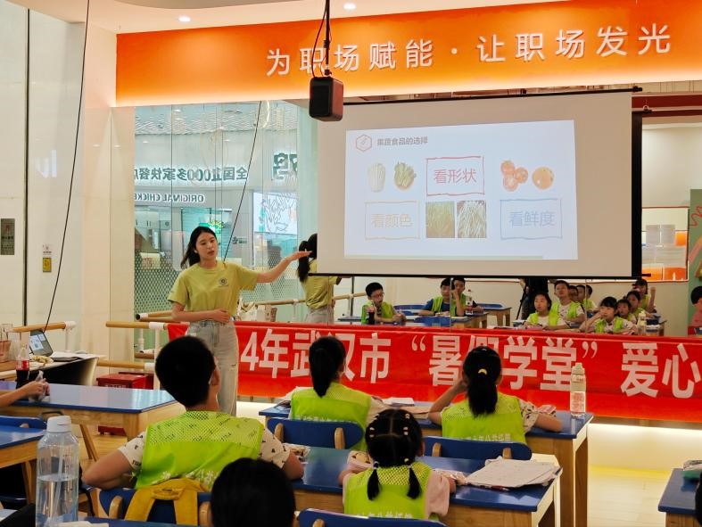 7月17日,博士團再出發,為武昌區長城匯托管班帶來了一場“果蔬王國 營養寶藏”主題食品知識科普,講師楊月為孩子們介紹了人體所需的七大營養素,并強調了果蔬在維持人體健康、預防疾病中的重要作用。通過分發果蔬干,并講解了不同顏色果蔬的營養特點和健康益處。