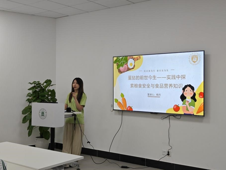 活動伊始,中國行博士團在新工科大樓120會議室開展以“蛋撻的前世今生——實踐中探索糧食安全與食品營養知識”為主題的宣講。博士團講師楊月闡述了糧食從農場到餐桌的過程,讓孩子們明白每一粒糧食的來之不易,通過講解我國著名的雜交水稻之父袁隆平院士的偉大貢獻,引出水稻育種的概念和優點,激發了孩子們對糧食安全的關注。緊接著,楊月介紹了食品加工的基本知識,通過講解谷物、肉類、水產品等的加工方式,小朋友們對食品的來源有了更清晰的認識,明白了食品安全的重要性。