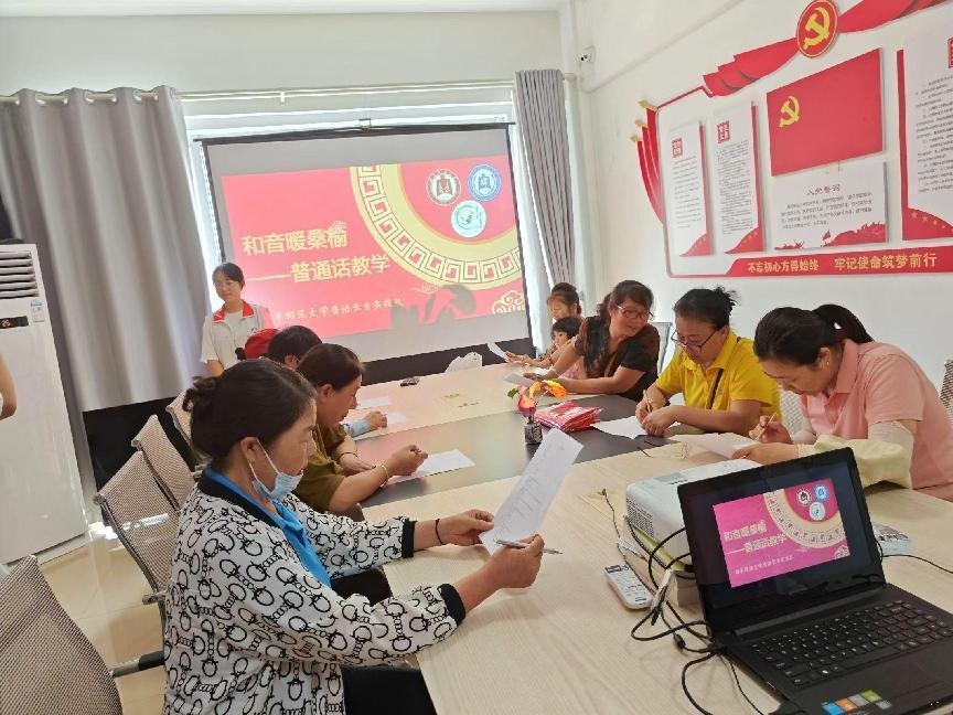 圖為實踐隊員教授普通話。中國大學生之聲網通訊員 張昕琦供圖