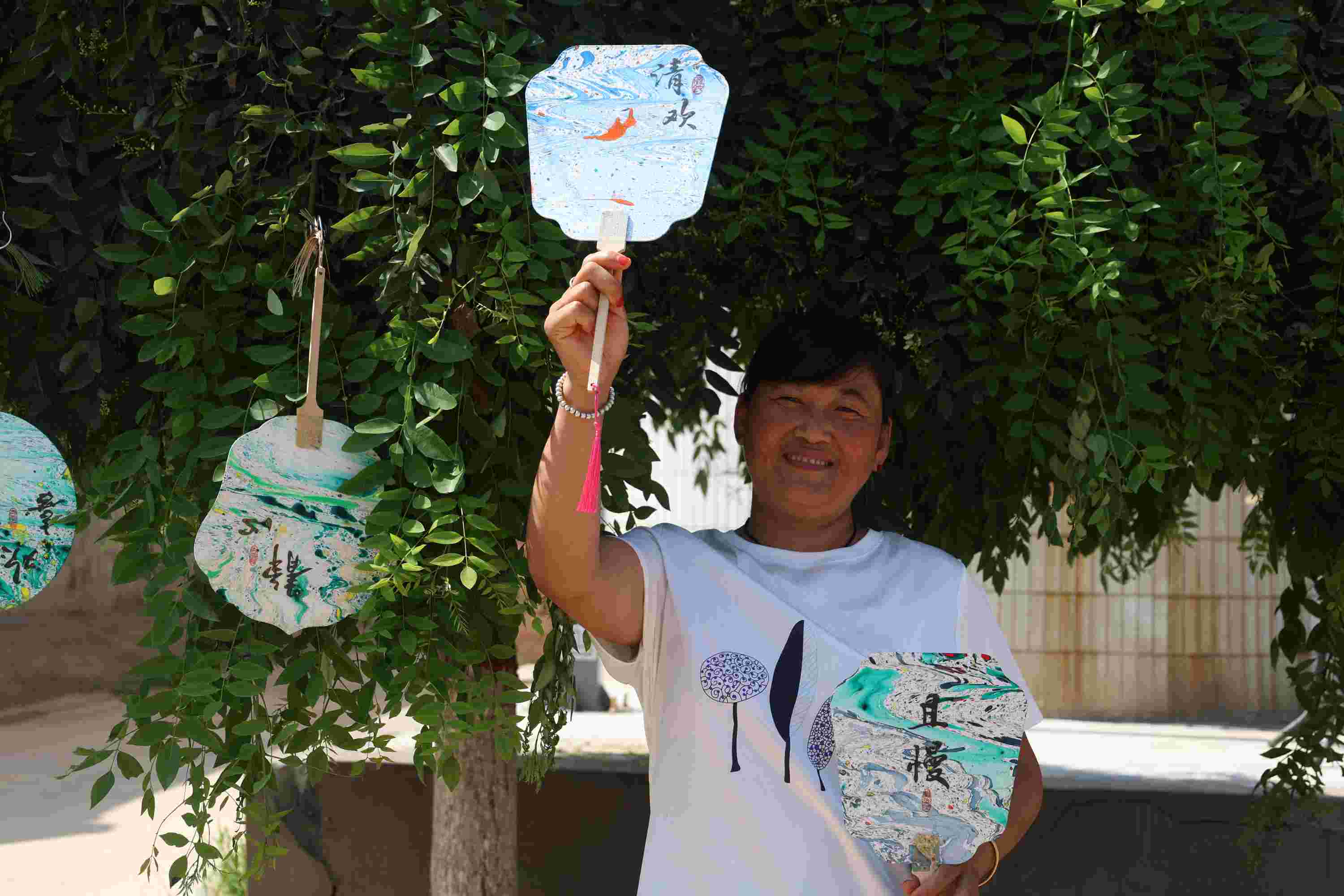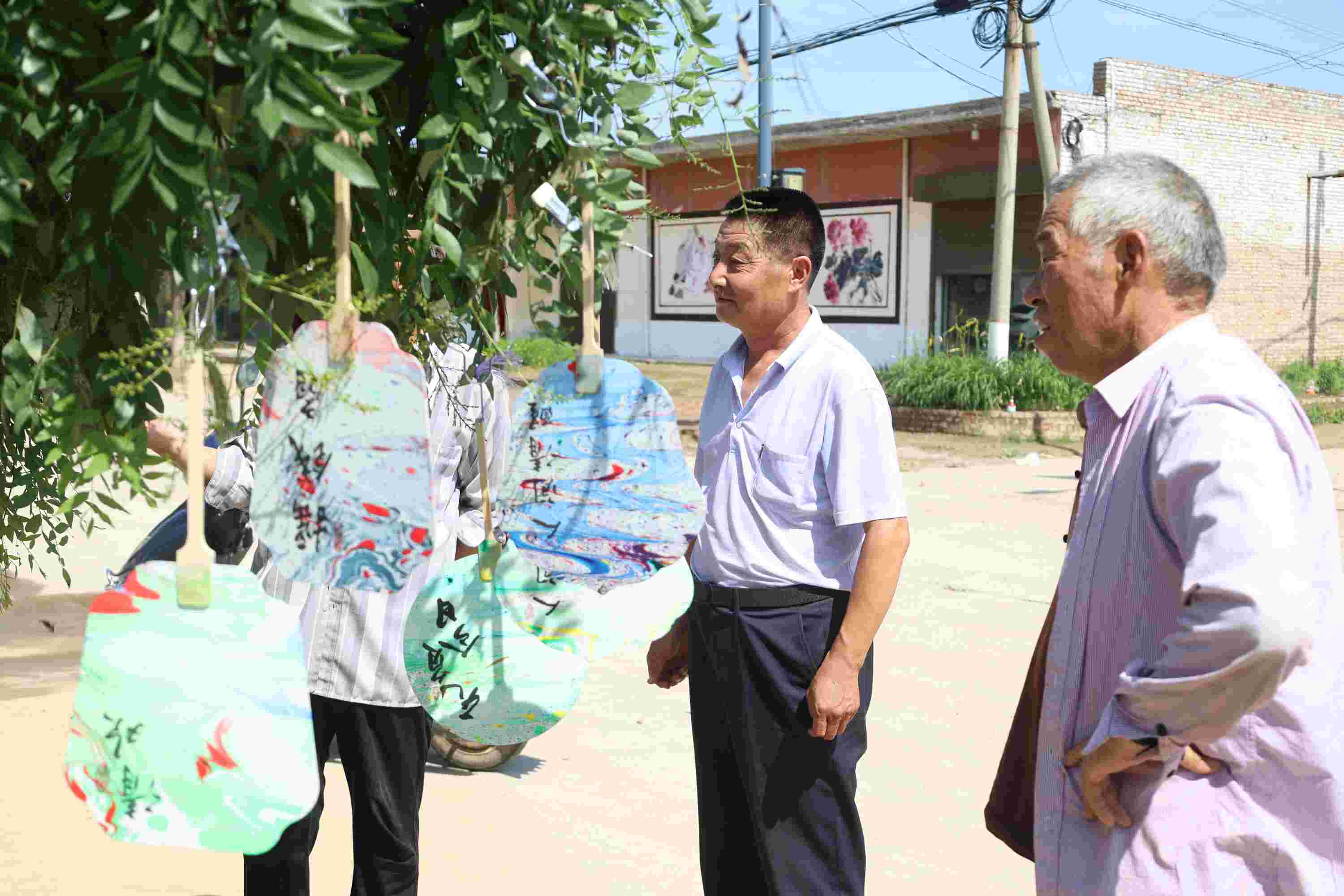 隨后,實(shí)踐團(tuán)成員與村民們一起將這些漆扇作品懸掛在樹(shù)木上,瞬間,漆扇隨風(fēng)飄動(dòng),形成了一道獨(dú)特而亮麗的風(fēng)景線,過(guò)往的村民紛紛駐足觀看,對(duì)這些精美的漆扇作品贊不絕口。