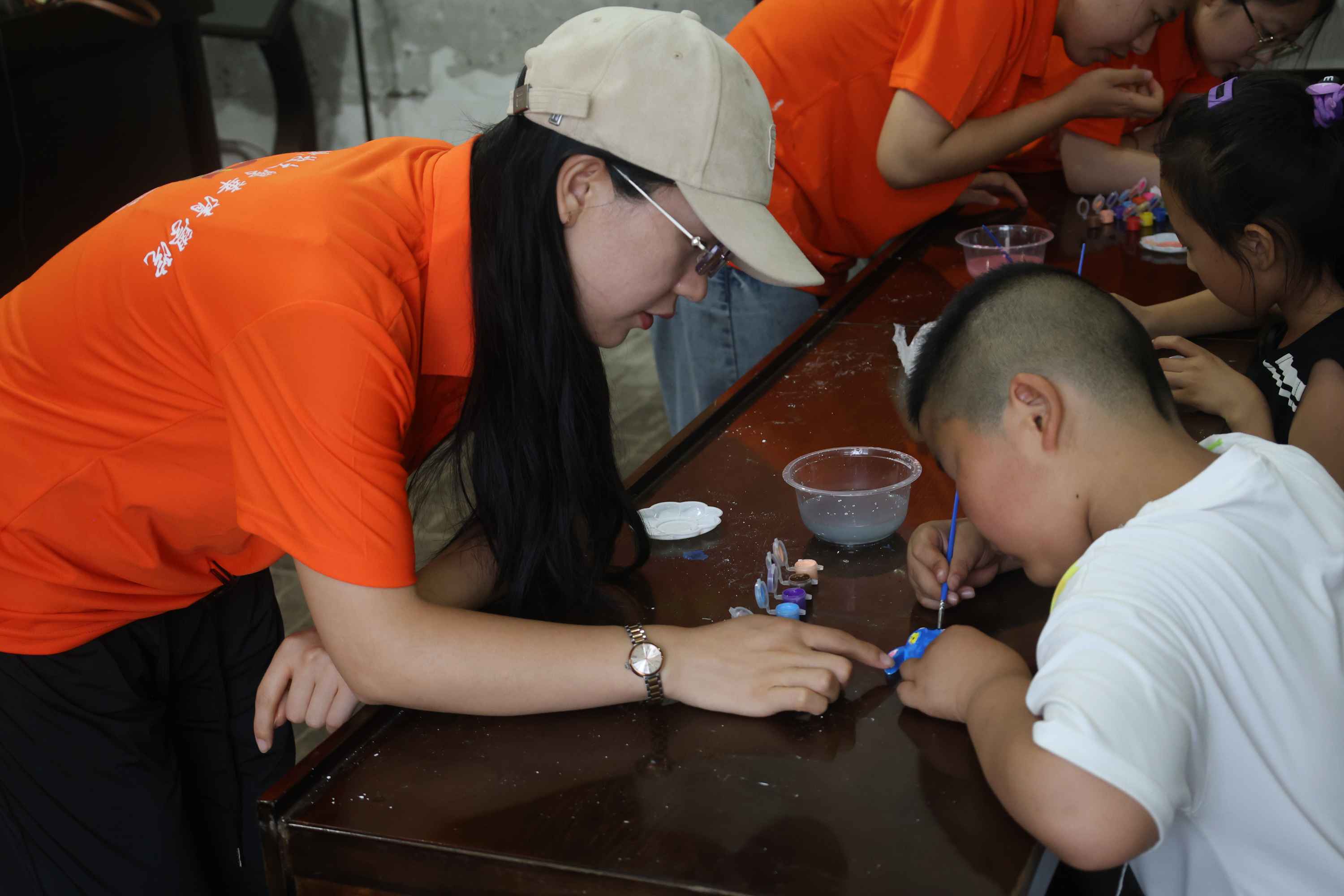 在活動現(xiàn)場,實踐團成員耐心地向孩子們傳授石膏娃娃涂鴉的基本技巧和要領,一筆一劃間傳遞著藝術的溫度和力量。隨后,孩子們迫不及待地拿起畫筆,蘸上五彩斑斕的顏料,開始了他們的藝術創(chuàng)作。經(jīng)過一個多小時的努力,一件件充滿童趣的石膏娃娃陸續(xù)誕生。每一個作品都獨一無二,承載著孩子們內心的夢想和對美好未來的向往??粗约旱淖髌返玫秸J可和贊賞,孩子們的臉上露出了燦爛的笑容。