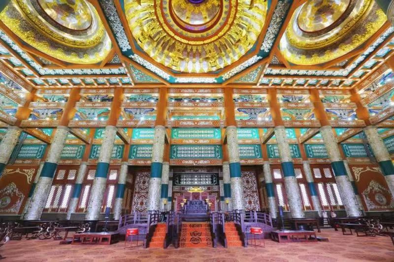 在園區內,我們可以近距離感受到元朝的榮耀與強大。大明殿作為元代朝廷舉辦重大儀式的地方,其玉砌朱鋪、深閎壯麗的建筑風格令人嘆為觀止。每根望柱之下都有伸出的鰲頭,與太和殿的臺陛在形狀上相去不遠,每一處細節都透露出古代工匠的精湛技藝和非凡智慧。除了歷史建筑外,園區還設有豐富的文化展示和娛樂活動。在鑄牢中華民族共同體意識展覽館里,我們通過大量的文字、實物資料了解草原上各族群的發展變化以及元代的盛衰歷史。