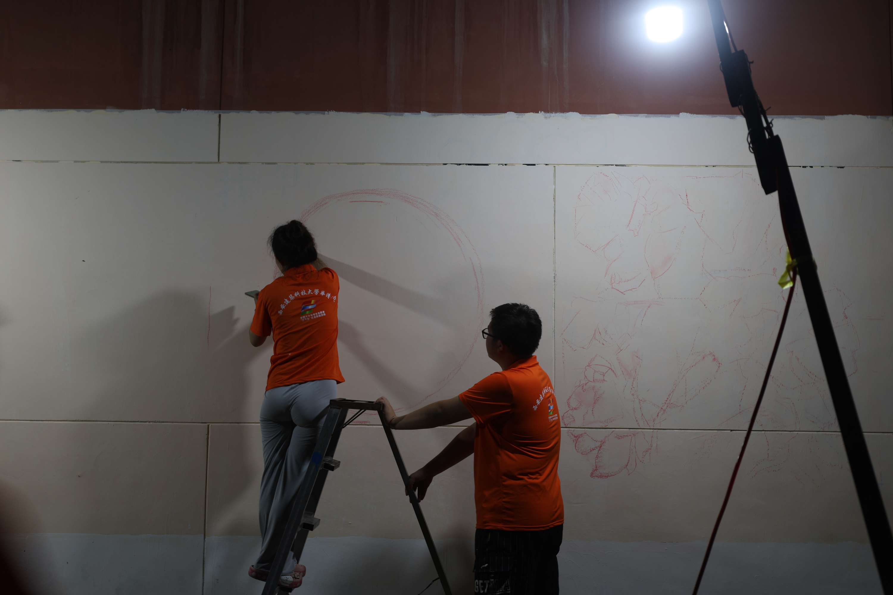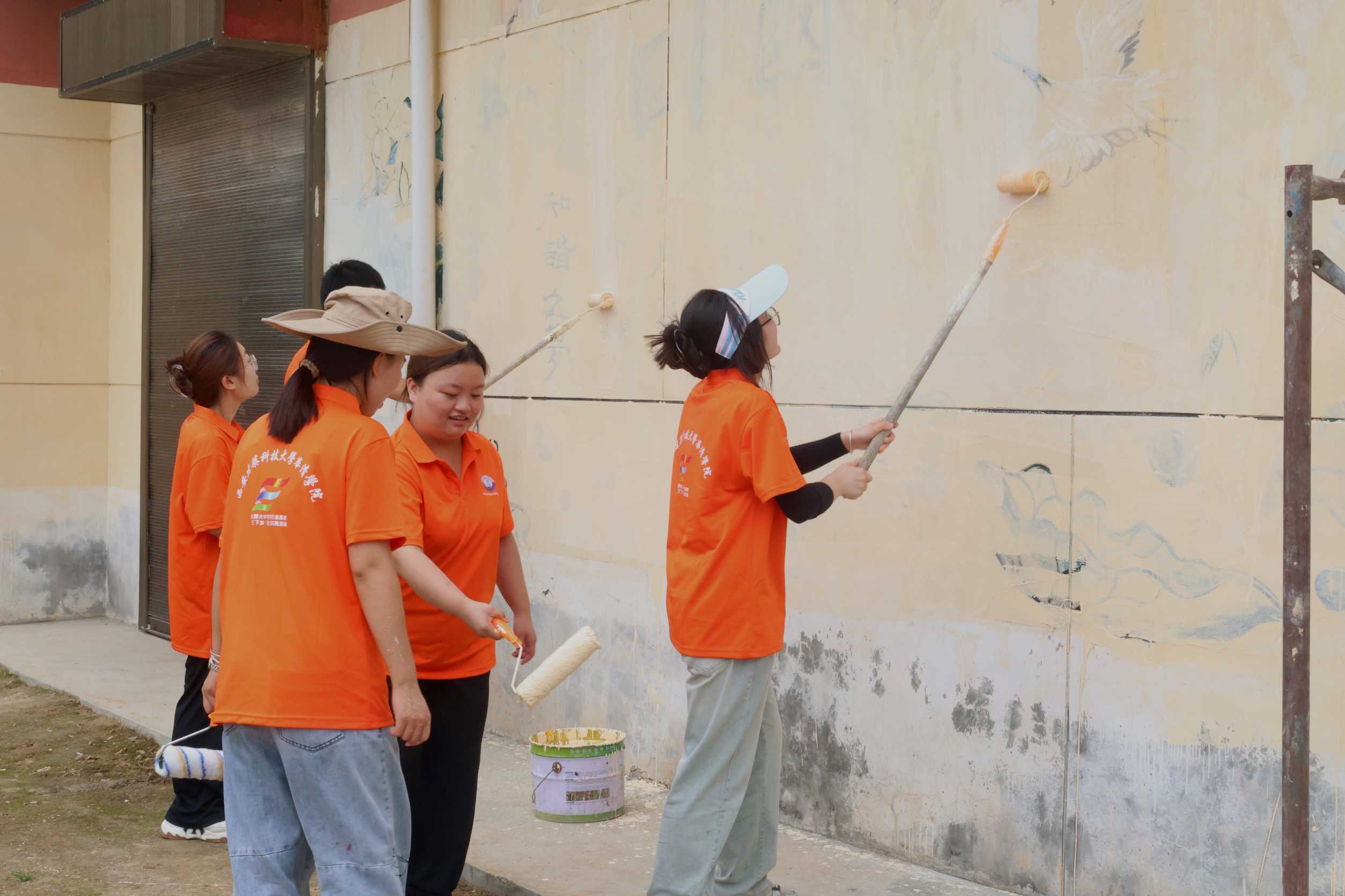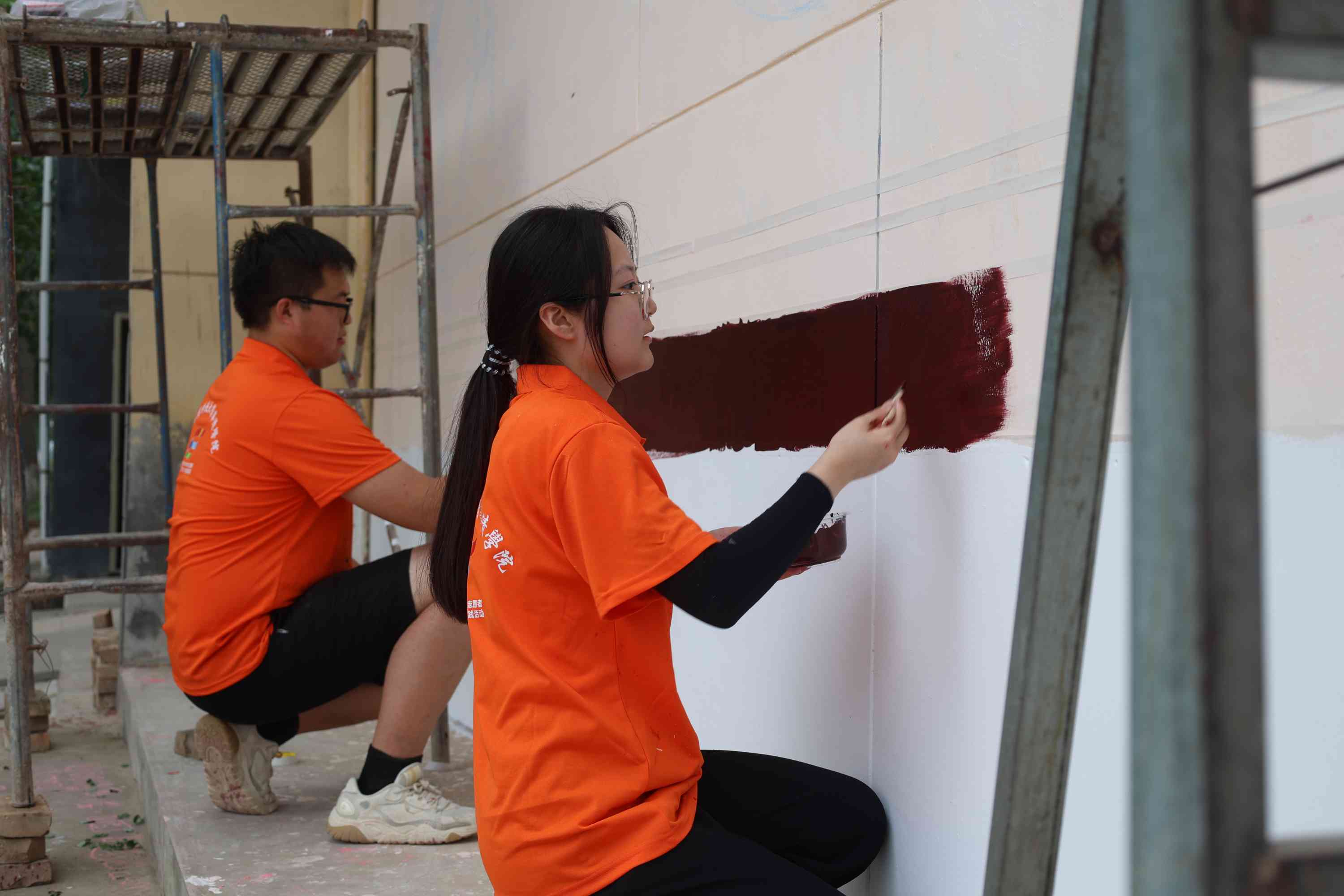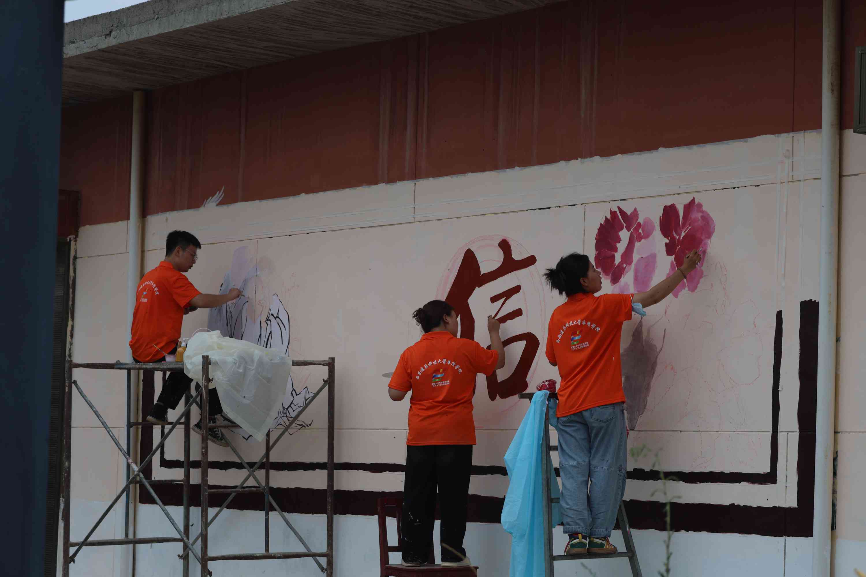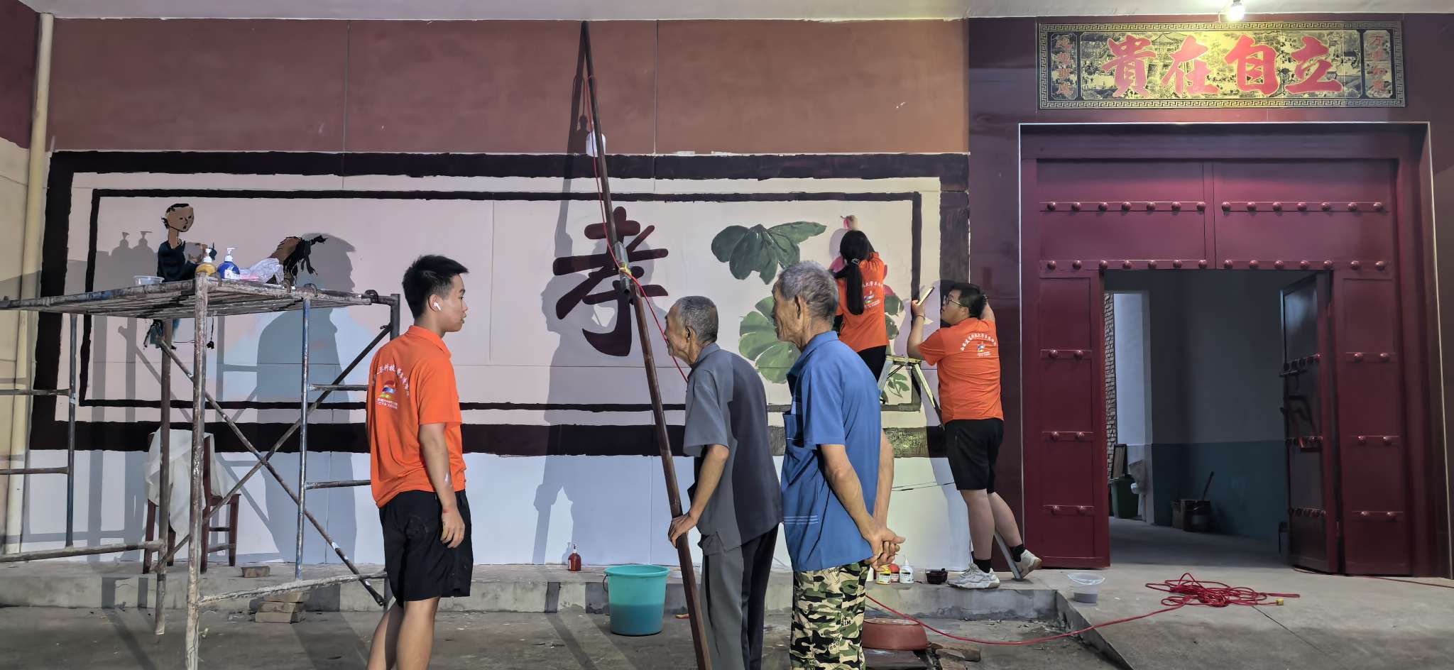 在墻繪創作過程中,天公不作美,大雨傾盆而下,但這并未澆滅實踐團成員們的熱情與決心。雷牙村第二黨支部書記申金良和村民們紛紛伸出援手,為此次墻繪活動做好后勤保障,給予了團隊極大的支持與幫助。他們幫忙搬運顏料、協助搭建腳手架、雨棚,在夜晚幫成員們撐起一盞明燈,場面十分溫馨。他們還表示:“這是我們自己的家鄉,能為家鄉的文化建設出一份力,我們感到非常自豪。”