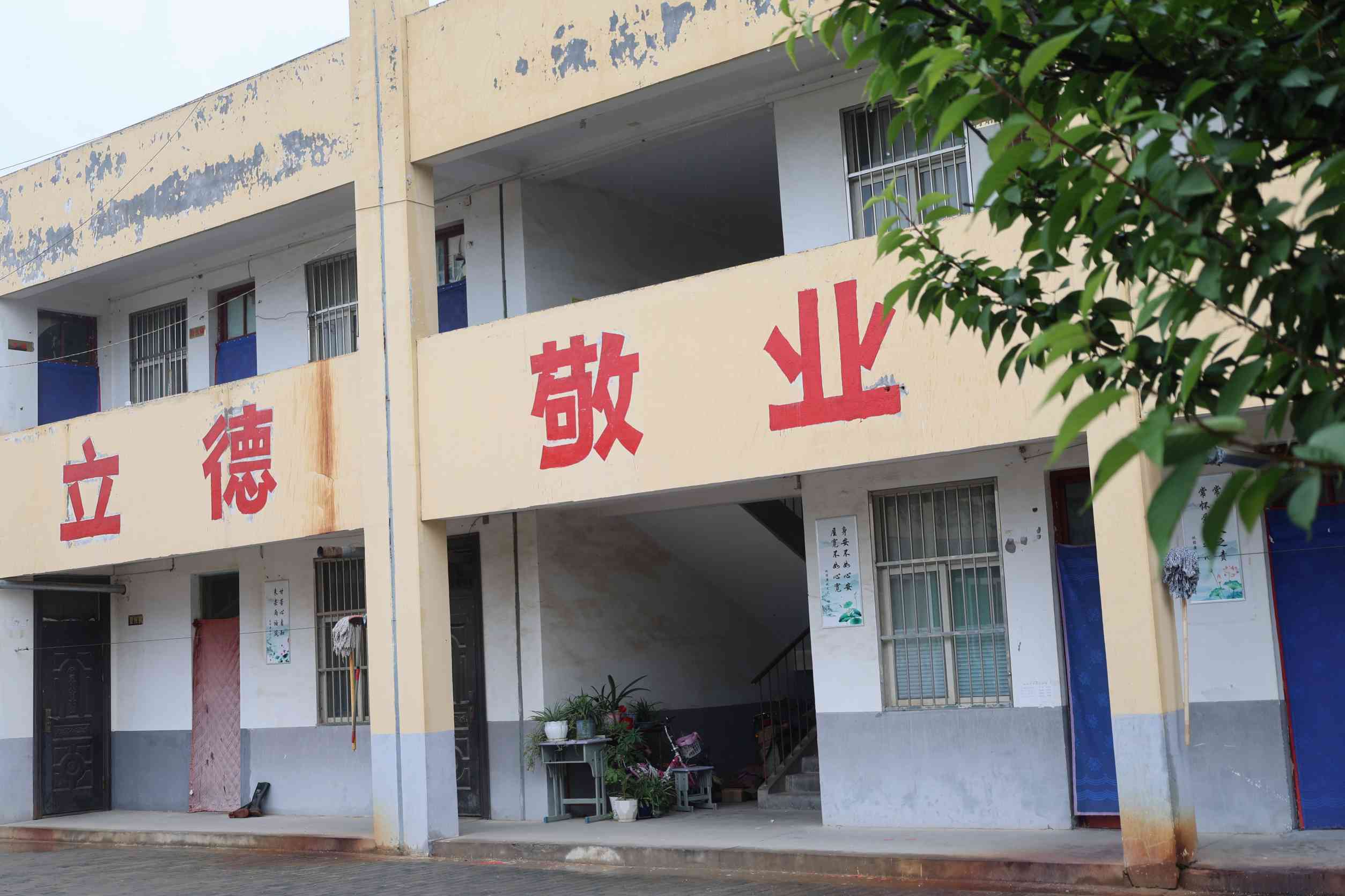 他們看到,雷牙村黨群服務中心門前的石柱顏色斑駁,長期無人翻修;雷牙小學墻體上的校訓標語紅漆掉落、不再醒目。這些不僅影響了村里的村容村貌,也影響了黨支部的議事環境與學生的學習氛圍,時不時掉落的墻皮還會造成安全隱患。近期,實踐團注意到了這一問題,并決定采取行動,為雷牙村帶來改變。