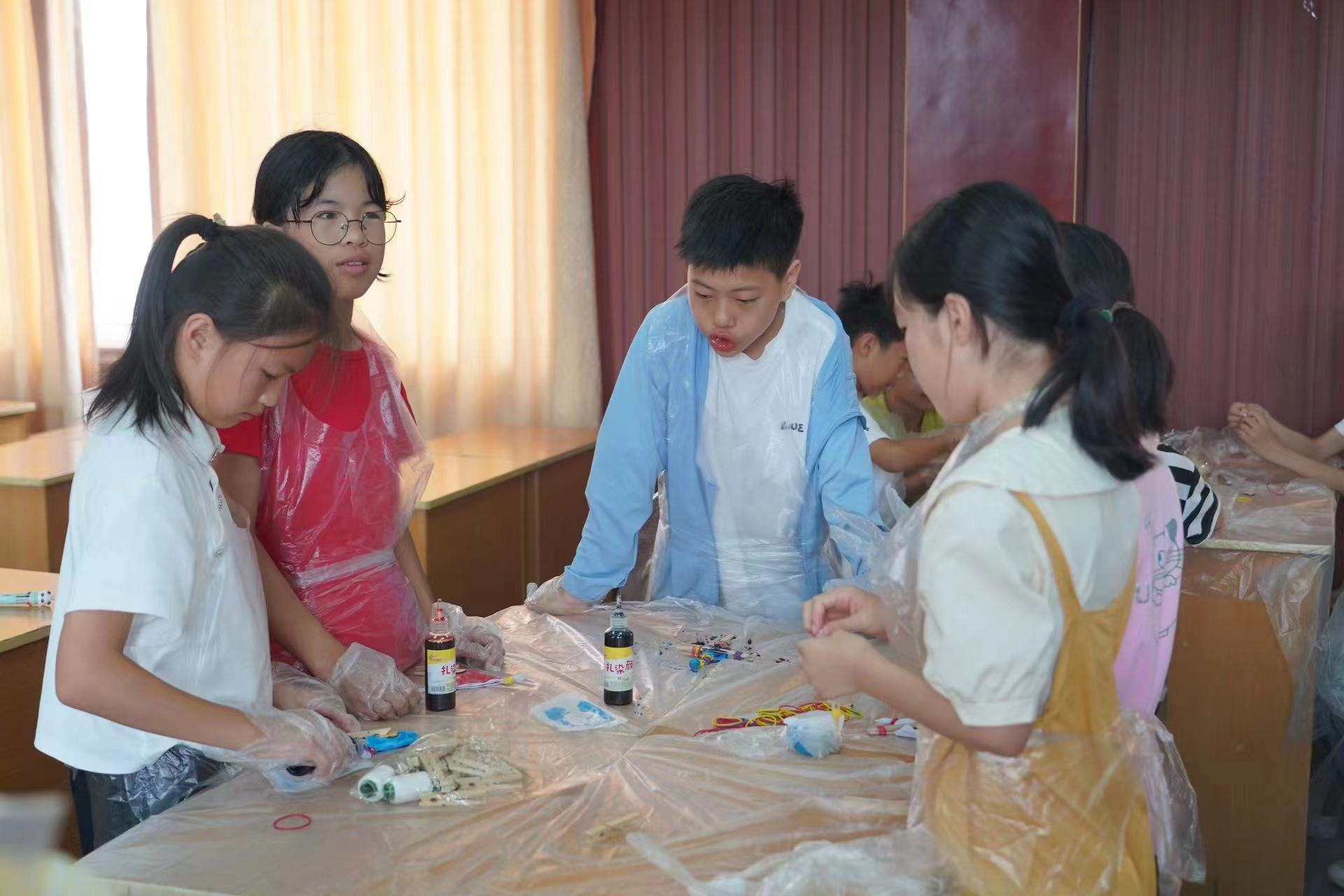 圖 2 同學(xué)們小組合作進(jìn)行扎染制作(滴水行動(dòng)之遇見小分隊(duì) 卜天玥 供圖)