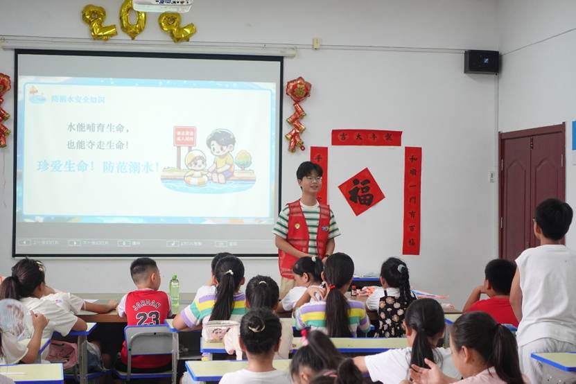 2024年7月22日,山東大學學生春暉社泗海承風支教隊的志愿者們在壹基金兒童服務站苗館鎮郭家莊村站點開展課程教學,今天教學的主要內容有圍棋科普和防溺水知識科普講座。