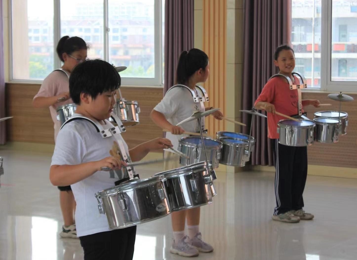 鼓點鏗鏘,號聲雄壯。實踐團成員們踴躍協(xié)助音樂老師展開鼓號隊教學活動,他們開創(chuàng)性地運用了“高年級幫扶低年級、一幫一”的教學模式,既彰顯了高年級學生的榜樣力量,又推動了低年級學生的迅速成長。節(jié)奏銘記于心,旋律掌控于手,鼓號隊的訓練滿溢著激情與力量。實踐團成員們與孩子們一同直面挑戰(zhàn),從基礎的樂理知識至復雜的演奏技巧,逐步深化。一次次的反復,一次次的磨合,一支初顯規(guī)模的鼓樂隊已然成形。