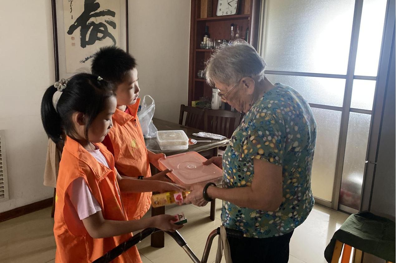 劉躍芬奶奶非常開心這些文明禮貌、有活力的小志愿者們來給自己送水餃,雖然行動不便,仍堅持將自己冰箱中的蘋果分給孩子們,體現了老中幼三代之間深厚的情感鏈接,更彰顯了愛的交換與傳遞。