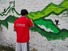 油你成蔭實踐團成員利用暑假的時間,深入垌尾村,積極開展了以“綠美廣東,鄉村振興”為主題的志愿服務活動。空空如也的白色水泥墻,在他們的精心繪制下,披上了五彩斑斕的“新裝”。實踐團成員們表示,將文旅融合作為首要任務,致力于打造具有地方特色的墻繪作品,借此彰顯鄉村的獨特魅力。