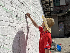 圖為油你成蔭實踐團成員在烈日下墻繪的身影。李鑫 攝
