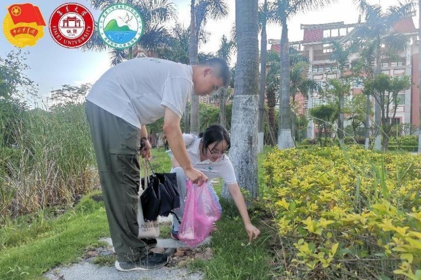 宣講聲聲播綠意,實踐步步鑄豐碑。碧島綠行實踐隊隊員們深知“紙上得來終覺淺,絕知此事要躬行”。2024年7月8日下午,實踐隊隊員們分為多個小組,于集美大學(xué)校園開展垃圾清掃活動。隊員們手持垃圾袋,在校園的各個角落撿拾地面上的垃圾,并將隱藏在草叢、樹底等難以發(fā)現(xiàn)的紙屑一一清理干凈。