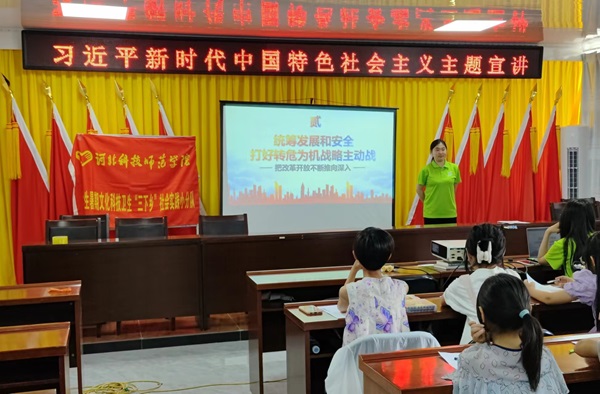 最后,宣講員強調(diào)新時代中國特色社會主義思想對于國家和村民個人的重要意義,號召村民們積極學習新思想,將其轉(zhuǎn)化為實際行動,共同為家鄉(xiāng)的發(fā)展和振興貢獻自己的一份力量。