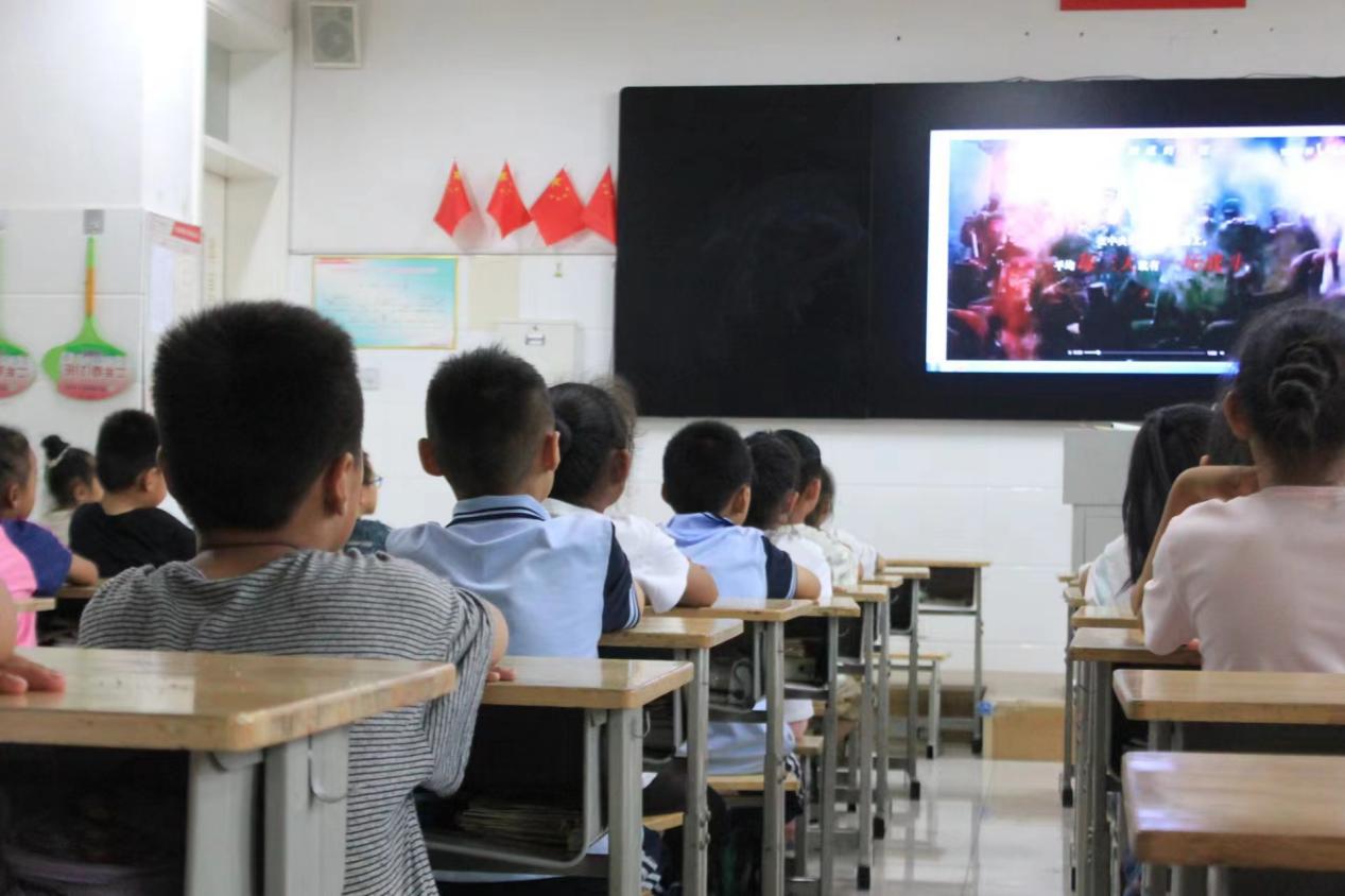 圖為孩子們觀看長征短片,山東理工大學李穎能提供