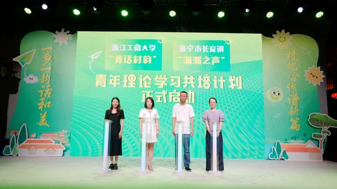 現(xiàn)場,浙江工商大學(xué)“青話村韻”、長安鎮(zhèn) “涌潮之聲”——青年理論學(xué)習(xí)共培計(jì)劃啟動(dòng)。去年,“浙里錢塘·青年造夢”大學(xué)生文化節(jié)(海寧)的舉行,讓浙江工商大學(xué)和海寧、長安走到了一起,彼此之間有了更多的聯(lián)系、互動(dòng)和交流。此次青年理論學(xué)習(xí)共培計(jì)劃的啟動(dòng),開啟了雙方更深入的合作。未來,雙方將緊密協(xié)作,通過理論宣講、社會(huì)實(shí)踐等方式推動(dòng)校地之間青年學(xué)習(xí)交流,共享各類學(xué)習(xí)培訓(xùn)資源,共同講好海寧高質(zhì)量發(fā)展故事,傳遞理論好聲音,推動(dòng)廣大青年一起“青話村韻,共譜‘潮’音”。