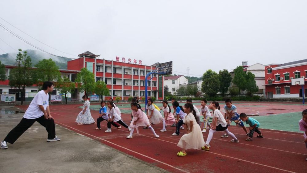 4.體育課:隊(duì)員肖博文帶領(lǐng)孩子們進(jìn)行廣播體操的教學(xué)和正步踏步的練習(xí),鍛煉身體素質(zhì),培養(yǎng)團(tuán)隊(duì)合作精神。