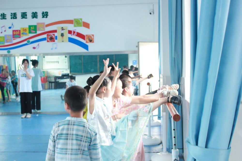 3.古典舞:隊(duì)員王若璇孩子們?cè)趦?yōu)美的古典音樂中,認(rèn)真學(xué)習(xí)壓前旁腿,開肩,古典手位,芭蕾手位,身韻,培養(yǎng)優(yōu)雅氣質(zhì)。