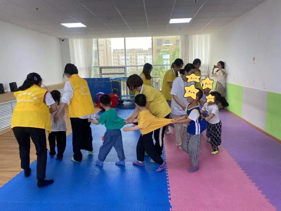 自閉兒童感統訓“打地鼠”課程為鍛煉孩子們的反應靈敏度和應激性,7月20日,實踐隊員高子涵設計了“打地鼠”的課程。首先讓孩子們圍成一個圓圈,每人站在一個圓環里面,作為自己的“洞穴”,老師站在中間,手拿氣球,作為“武器”。每當氣球要打到“地鼠”的頭時,孩子們必須立刻蹲下去,這樣才可以躲避“攻擊”。