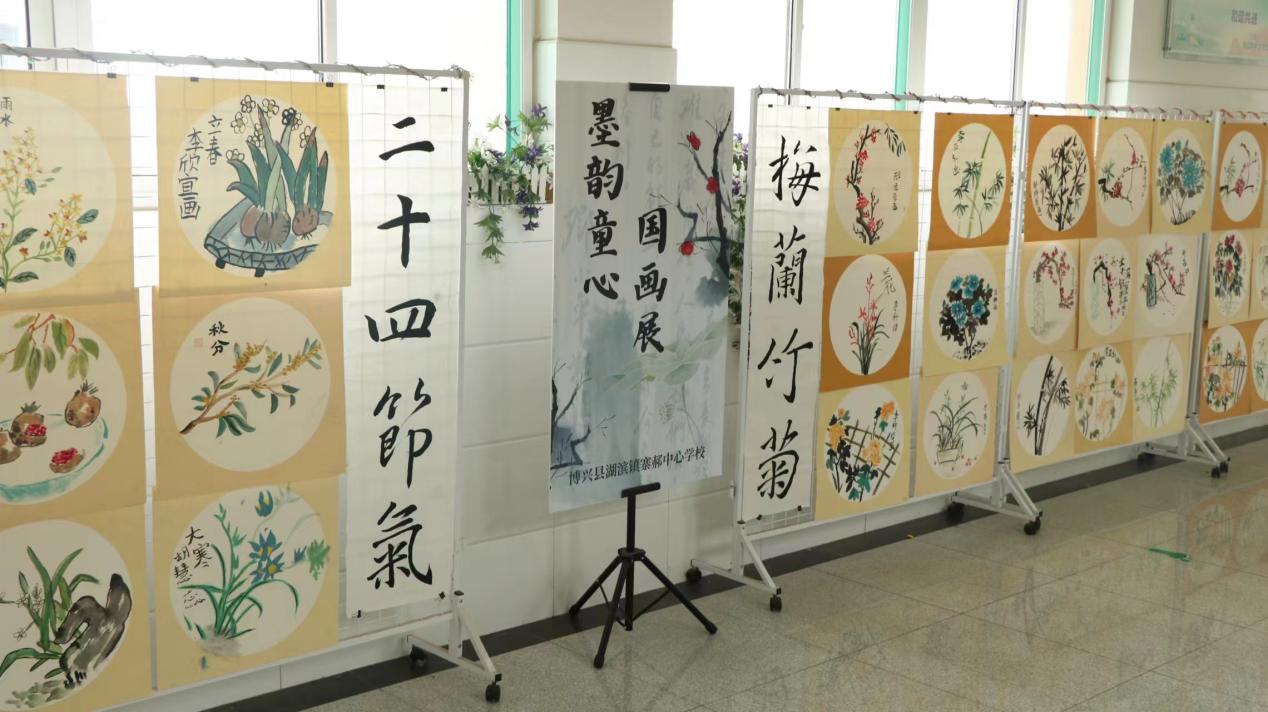 其旁邊是同學(xué)們的畫作。這些畫作涵蓋了二十四節(jié)氣的變換更迭和梅蘭竹菊的高潔品質(zhì),每一幅都充滿了生機(jī)與美感。