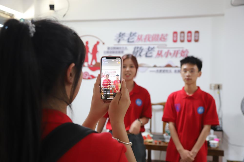7月12日,實踐隊成員來到了仙巖村老人們溫馨的相聚之所——孝老食堂。在這里,成員們積極幫助孝老食堂的工作人員,認真地洗菜、精心地備菜,只為讓老人們能夠準時享用飯菜。飯菜準備妥當了,成員們便熱情地為老人們端上餐桌。在老人們用餐結束后,成員們為保持食堂衛生整潔,也認真做好了衛生保潔工作。此外,實踐隊成員并沒有停下關愛老人的腳步。他們陪伴在老人身旁,與老人們聊天解悶,分享生活中的趣事。在交流過程中,老人們的臉上一直洋溢著笑容。