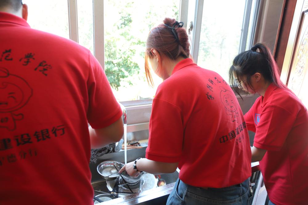 圖為實踐隊成員在孝老食堂收拾衛生 王鈺/提供