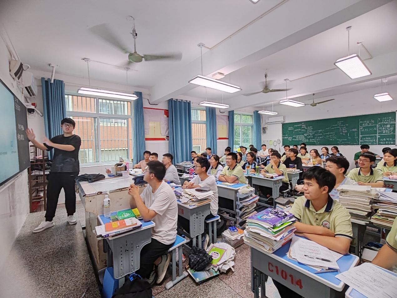 互動激熱情,青春思辨展風采在母校的熱情接待后,實踐隊伍滿懷激情地走進了高中校園里的一間課堂。通過展示精心設計的PPT以及運用生動形象的講解方式,講解員詳細介紹了習近平新時代中國特色社會主義思想的形成背景、主要內容和重要意義。在宣講過程中,宣講員注重將理論知識與現實生活相結合,用通俗易懂的語言和鮮活的事例闡述新思想的深刻內涵和時代價值。此次宣講活動的宣講內容既嚴謹又生動,不僅引起了同學們的強烈共鳴和熱烈反響,還激發了他們學習新思想的濃厚興趣和熱情。為了增強宣講的互動性和實效性,策劃組還在宣講過程中穿插了多個互動環節。實踐隊員鼓勵同學們積極提問、發表看法和分享心得體會。針對同學們的問題,實踐團隊成員耐心解答、悉心引導,幫助他們更加深入地理解新思想的精髓和要義。實踐團隊還通過組織小組討論、進行角色扮演等互動形式激發同學們的參與熱情和創造力,讓他們在輕松愉快的氛圍中深化對新思想的理解和認識。