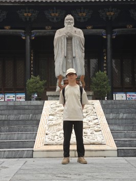 圖為實踐隊員與孔子雕像 中國青年網通訊員 張馨怡 攝 |