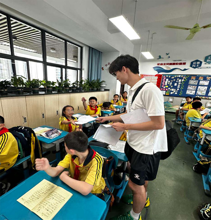 五名同學通過問卷調查、訪談交流、細致觀察與案例分析等多種方式,深入了解毓秀小學科學啟蒙教育的現狀與挑戰,詳細了解學校在科學啟蒙教育方面的規劃投入以及該校在科學啟蒙方面的教學實踐、課程設置、學生學習效果等。五名同學與小學生一齊參與科學課堂,并在課后與小學生進行交流。團隊成員通過交流了解到,科學課不僅能讓學生學習到有趣的科學知識,還能有效激發他們對科學學習的興趣。五名同學對四名科學教師進行訪談交流后深刻領悟到科學教育對于激發孩子潛能、培養創新思維的重要意義。