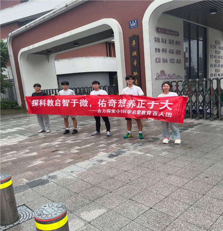 為積極響應國家科教興國戰略,為科學啟蒙事業貢獻力量,王杰、邱智鵬、田碩、朱昱丞、張天韻五名同學于6月24日下午踏入平湖市毓秀小學校園內,展開主題為“合力探索小學科學啟蒙教育”的暑期社會實踐活動。