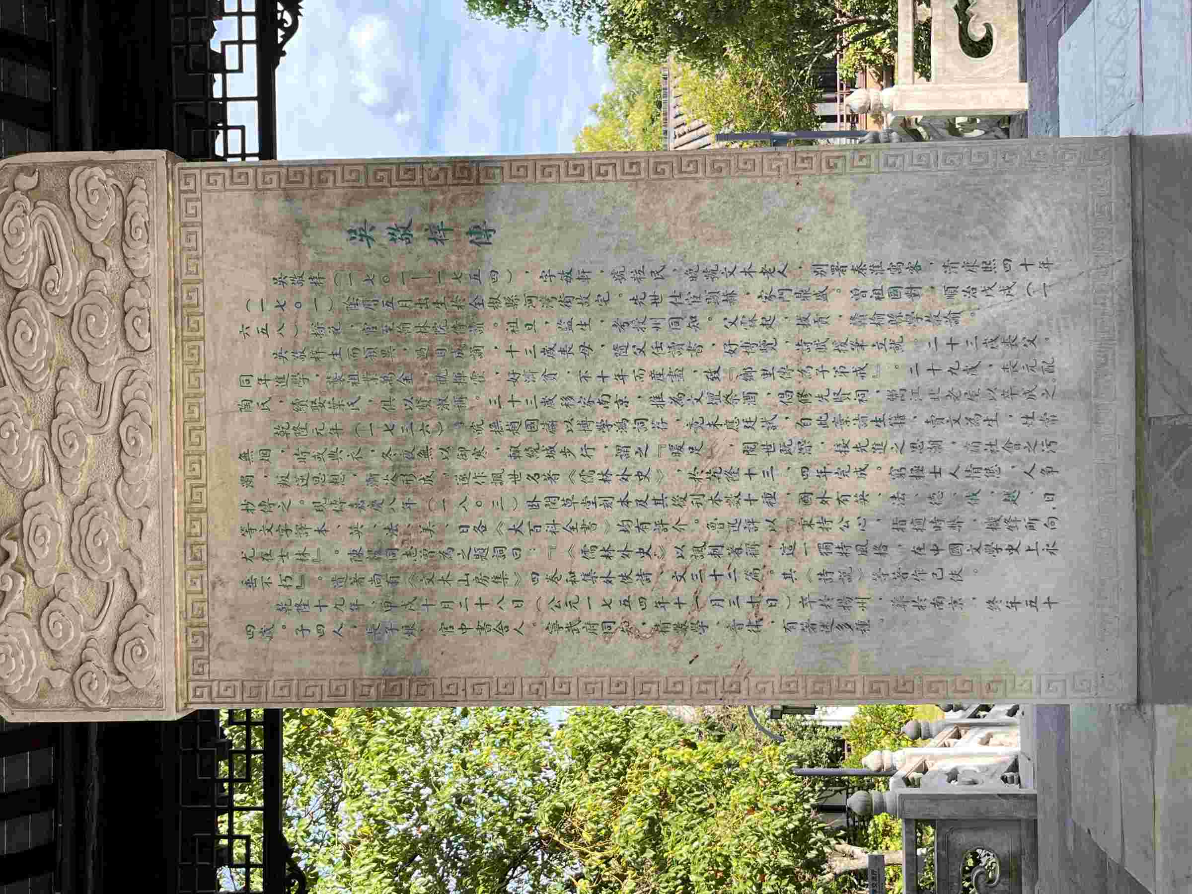 圖為正廳前的吳敬梓銅像。大門兩邊四座鼓形旗桿石,象征著“探花門第”當年的鼎盛。在正廳前草坪中央,立有一尊吳敬梓銅像,高約10米,手握書卷,直面蒼生,給人以栩栩如生的感慨。 過廳正中矗立一尊巨型石碑。碑陽刻著魯迅先生在《中國小說集》中的一段話:“追吳敬梓《儒林外史》出,乃秉持公心,指拋時弊,機鋒所向,尤在士林,其文又蹙而能詣。婉而多諷,于是說部中乃始有足稱諷刺之書”。碑開刻著《吳敬梓》傳。