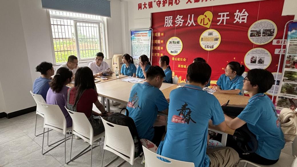 (圖為團隊成員與同大鎮趙站長商討關愛服務團實踐的相關事宜。通訊員 任瑾怡 攝)
