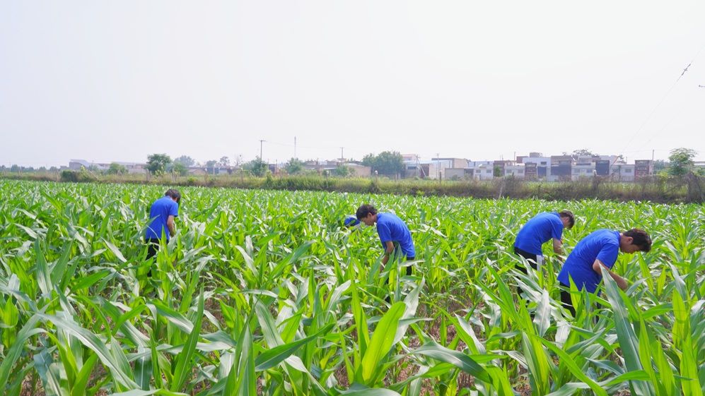 圖為團隊成員深入田間地頭觀察農(nóng)作物生長情況