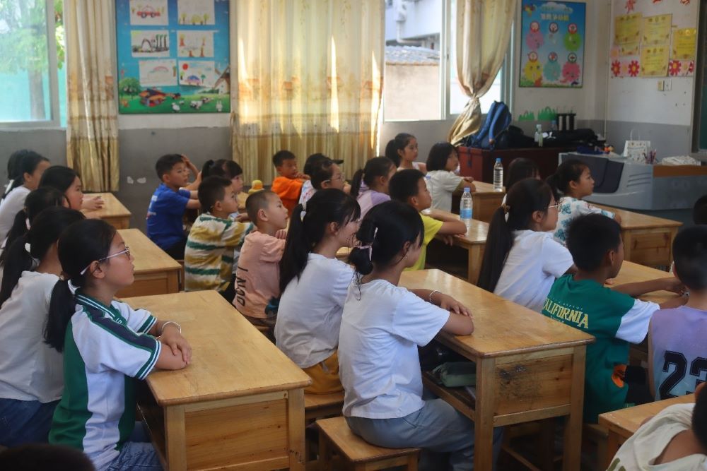 啟動儀式伊始,支教隊成員首先向在場的小朋友們詳盡闡述了夏令營的各項規定與紀律要求,確保每位小朋友都能在安全、有序的環境中收獲知識的滋養與成長的快樂。隨后,支教隊老師向小朋友們展示了來自廈門市海滄街道臨港社區小朋友們的手寫明信片祝福,每一張明信片均承載著他們對朱口鎮小朋友們的深切關懷與美好祝愿,而祝福語的內容撰寫則主要聚焦于“好好學習、天天開心、身體健康”三個方面的溫馨主題展開,他們期望朱口鎮的小朋友們都能擁有強健的體魄,懷揣著心中的夢想向著更加美好的未來勇敢前行。