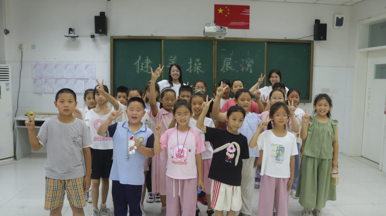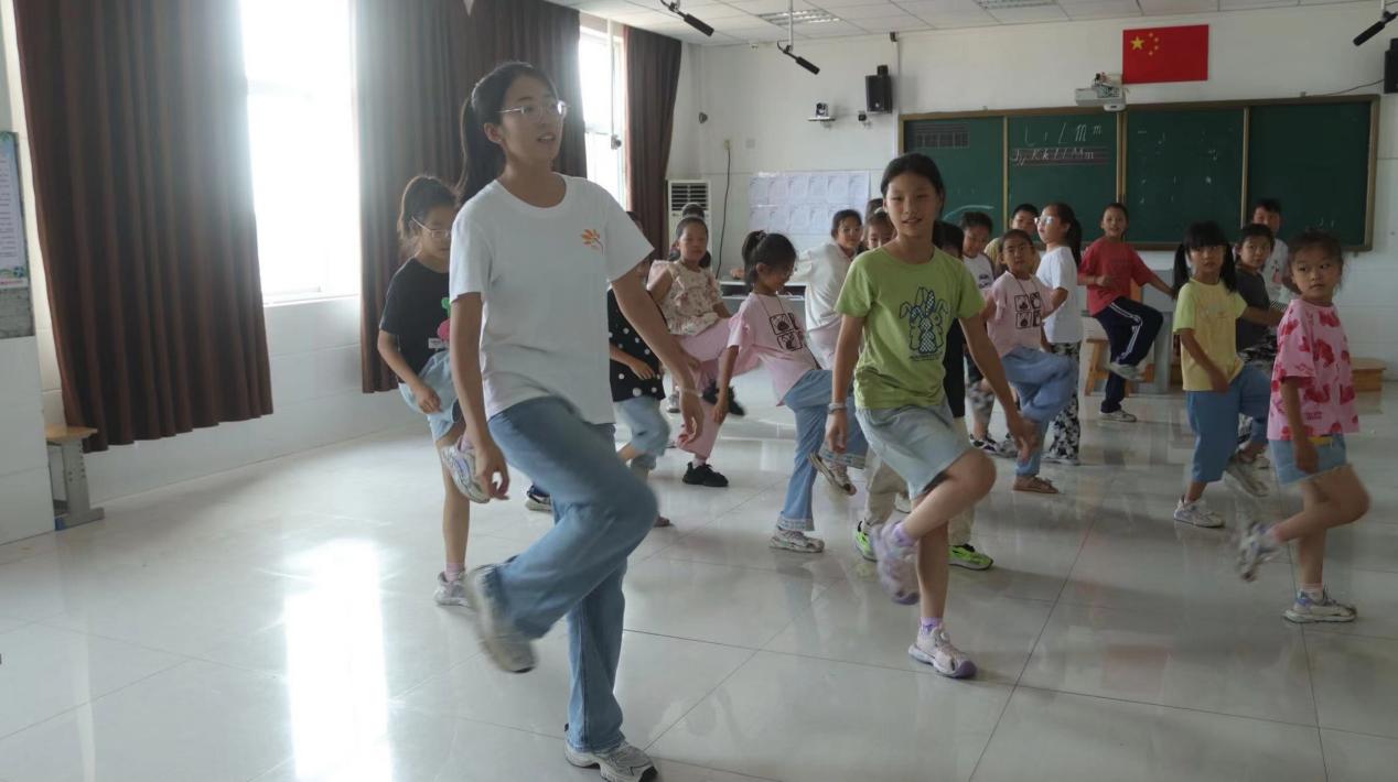 在日常訓練中,實踐團成員紀艷艷耐心地指導著每一個動作,引領著健美操隊的每一步成長。從基本的步伐到復雜的組合動作,紀艷艷都認真講解,力求精準到位。孩子們圍成半圈,認真聆聽講解,生怕錯過任何一個關鍵信息。盡管孩子們臉上逐漸布滿了細密的汗珠,但他們的眼神愈發堅定。在不斷地挑戰自我、突破極限的過程中,同學們不僅提高了自己的健美操水平,更培養了堅韌不拔的意志和團隊合作精神。