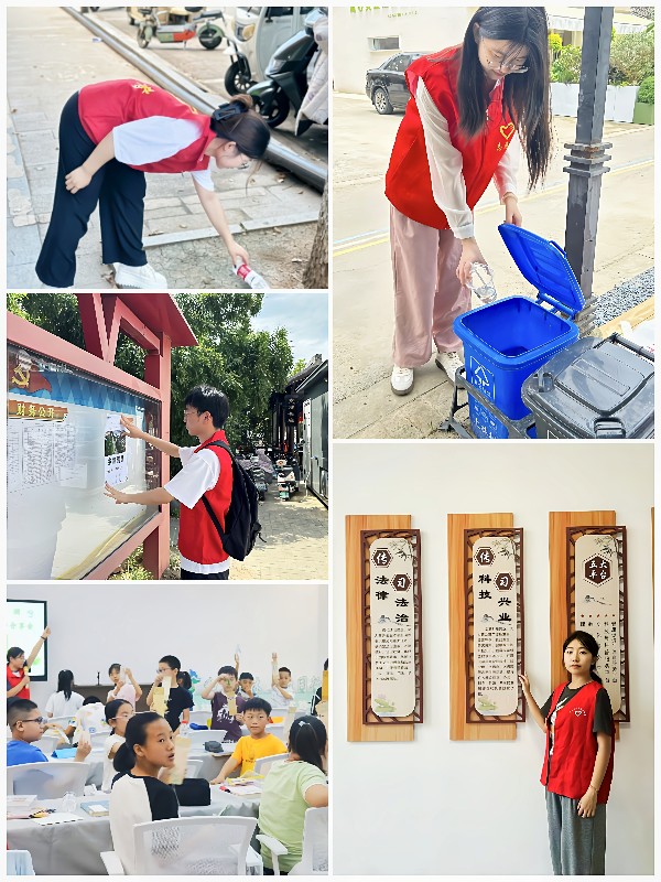 團(tuán)隊成員以各村新時代文明實踐站為依托,開展文明引導(dǎo)、垃圾分類、圖書整理、歷史講解等公益志愿項目。成員們?yōu)楦鞔遛r(nóng)家書屋捐獻(xiàn)多類書籍,在不同地點開展讀書交流會,鼓勵孩子們將個人夢想融入國家需要和鄉(xiāng)村發(fā)展中,為鄉(xiāng)村振興奠定堅實的人才基礎(chǔ);成員不畏酷暑,深入村巷,向村民發(fā)放"蘇韻鄉(xiāng)旅"宣傳資料,同時進(jìn)行現(xiàn)場答疑,向村民普及鄉(xiāng)村旅游產(chǎn)業(yè)知識;團(tuán)隊以清理垃圾、維護(hù)村容、海報宣傳等多種形式向村民普及垃圾分類和環(huán)保知識,用實際行動踐行環(huán)保理念。
