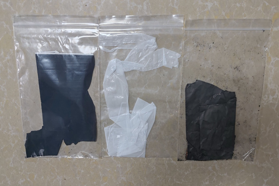 圖為瑞杰特公司拆解車間拆解出的鋰電池含鉛石墨正極(右一),電池隔膜(右二),磷酸鐵鋰負極(左一)通訊員 李雯婕 攝