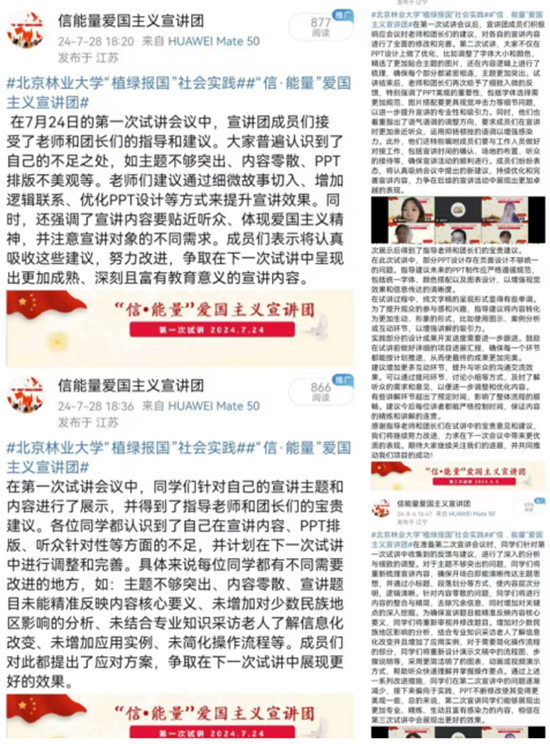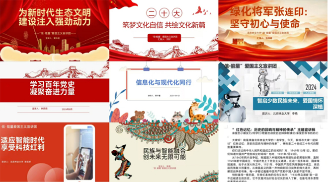 實踐開展情況 截止到目前,“信·能量”愛國主義宣講團在線上完成了第一、二次試講,擬前往鄉村振興一線、西部基層一線、社區服務一線,深入學習二十大,以時代楷模為榜樣,探訪中國式現代化的奮進之路,制作了PPT、實踐方案與講稿。