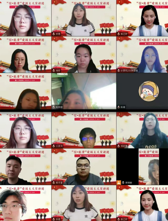 7月24日,“信·能量”愛國主義宣講團召開了第一次線上會議,并進行第一次試講,宣講團的所有成員與指導老師和四位團長完成了首次交流。團隊對即將開展的任務有了全面的了解,并接受了撰寫宣講稿和設計PPT的指導。接著,成員們高效確定了實踐和宣講的地點,為接下來的活動打下了堅實基礎。