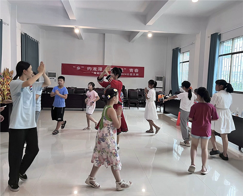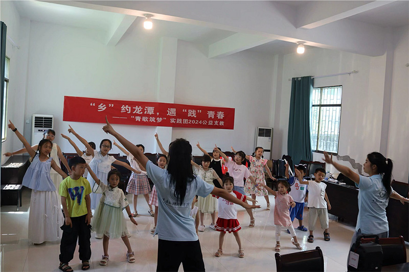 為踐行大學生志愿服務精神,積極服務社會,鍛煉實踐能力,提高綜合素質,7月13日起,“青歌筑夢”實踐團來到酉陽縣龍潭鎮龍泉社區新時代文明實踐站開展了系列公益支教活動,帶領當地孩子領略音樂、舞蹈的魅力,激發孩子們對藝術的熱愛,用音符筑夢鄉村振興,用旋律奏響美育樂章。