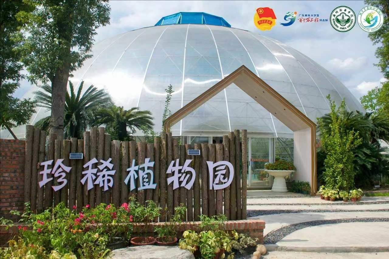 珍稀植物園占地700平方,直徑30米,采用亞克力陽光板從上往下灌注,一體成型,并配備新風換氣系統,確保其內部溫度穩定在28-35攝氏度,為熱帶植物提供了理想的生長環境。