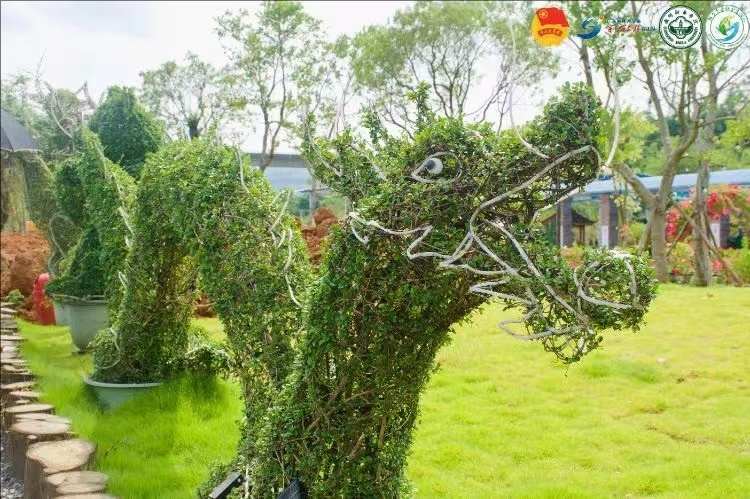 盆景師以福建茶樹為畫布,巧妙地將兩株茶樹相互交織,如同編織一段生命的詩篇。于剪刀舞動間,賦予了這些植物新的生命形態,創造出栩栩如生的動物形象。在這里,你可以遇見蜿蜒盤旋的龍,它們似乎隨時準備騰空而起;或是祥瑞之獸麒麟,其莊嚴威武的姿態令人肅然起敬;還有那優雅的長頸鹿,它們伸長了脖子,仿佛在探尋遠方的秘密。每一株盆景都是盆景師匠心獨運的杰作,它們不僅是視覺的盛宴,更是心靈與自然和諧共舞的見證。