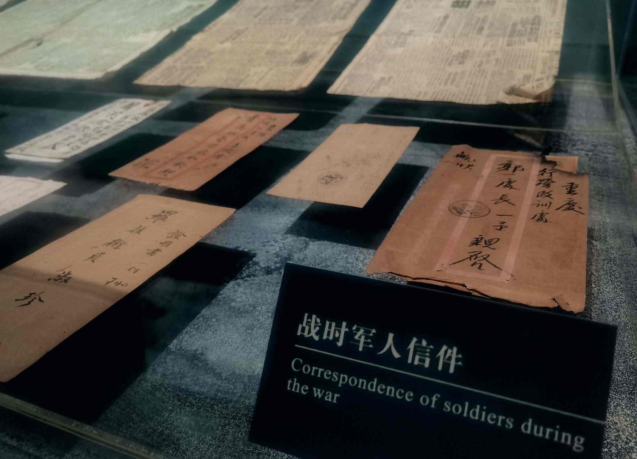 一、正面戰(zhàn)場館。該館真實再現(xiàn)了國民黨軍隊在正面戰(zhàn)場頑強抗擊日寇的英雄事跡。中華民族從不畏懼強暴,面對日寇,唯有沖鋒。紀念館里矗立著許多義憤填膺的軍人銅像,仿佛能看見他們用剛毅健全的意志支撐殘缺的肢體沖向敵人。展柜上還陳列著先烈們的遺物,有飛行服、有銅墨盒,有象征光榮與必勝信念的勛章,還有寄予無限期盼的書信與瓷盤。通過參觀,我們了解到抗戰(zhàn)時期中國軍民的英勇抗敵精神,以及戰(zhàn)爭帶來的巨大犧牲與痛苦。
