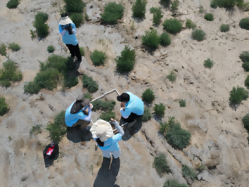 在實踐過程中,團隊成員們不畏酷暑,深入田間地頭,仔細觀察和記錄各類牧草的生長狀況,采集樣本以進行進一步的分析研究。同時針對鹽堿地分布情況,團隊運用無人機進行地理信息技術和實地勘察相結合的方法,粗略的了解了鹽堿地分布情況,為后續的改良工作提供了數據支持。